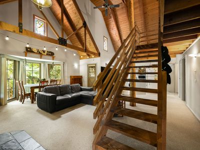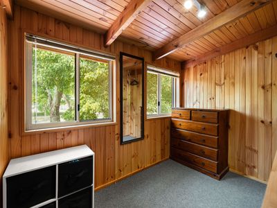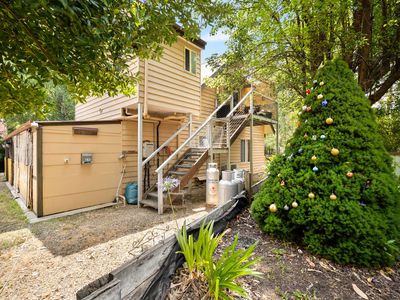 Above this secondary dwelling sits a versatile studio‑style unit, currently secured with a long‑term lease and ideal as a permanent rental or highly desirable alpine holiday apartment. This light‑filled residence features a large bedroom, open‑plan living and dining area, kitchen with gas cooking and washing machine. The private rear balcony is nestled amongst the beautiful surrounding trees that become truly spectacular during autumn. It also includes its own lockable garage space and an additional off‑street car park.