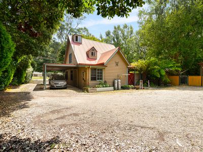 The primary residence is warm, inviting and full of character, featuring three bedrooms and two bathrooms, including a master with ensuite, a spacious walk‑in robe and a charming attic with its own window. The heart of the home is open‑plan kitchen, dining, living area, boasting high pitched timber ceilings, a cosy wood fireplace and ceiling fan. The two additional bedrooms include built‑in robes, while the family bathroom offers a shower, bath and separate spa bath. A separate toilet and laundry enhance practicality, and outside, the double carport and beautifully established cottage garden provide privacy, shade and a wonderfully serene atmosphere.