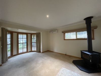 Privately set at the rear is a modern, low‑maintenance two‑bedroom home offering relaxed living. With a stylish kitchen, open‑plan living and dining space, bay window, wood fire and split system air conditioning, it is designed for comfort in every season. A fully enclosed entertaining area and fenced yard create a peaceful retreat, complete with a lockable garage and an additional off‑street parking space.